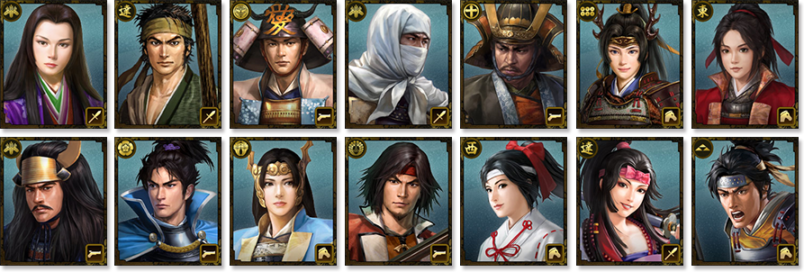 家来武将は、いずれも史実で活躍した名将・勇将たち。剣豪や忍者、商人や女性も登場!その数2000名以上。