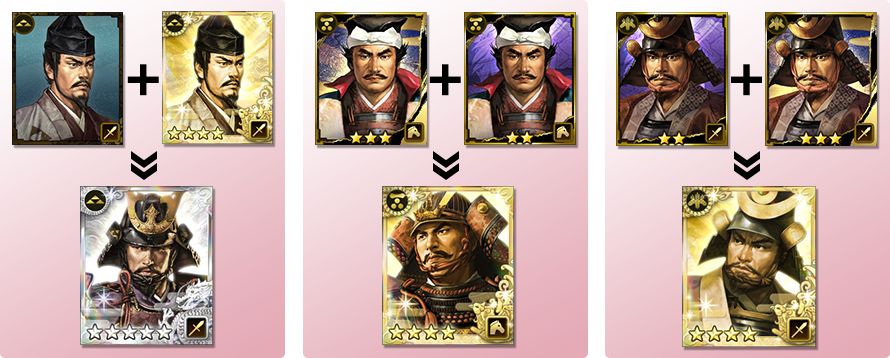 同じ家来を組み合わせることで、その家来の能力をアップさせることができます。