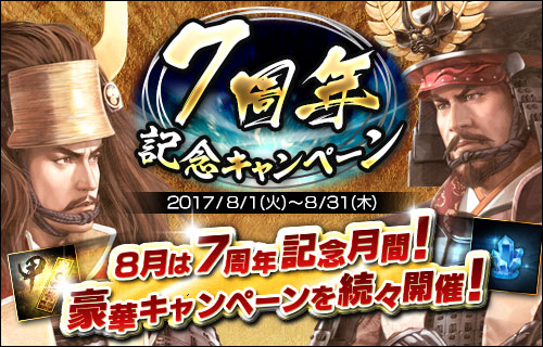 2017/8/26(土)で、『100万人の信長の野望』は7周年