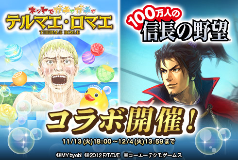 12/4(火)13:59まで、『テルマエ・ロマエ ガチャ』と『100万人の信長の野望』のコラボ課題を開催!