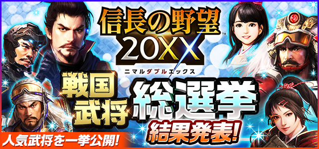 多数の投票ありがとうございました! 2025年3月27日(木)~4月22日(火)に行われた「信長の野望 20XX」戦国武将第10回総選挙の結果発表となります。