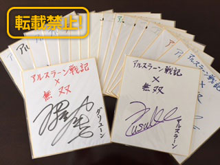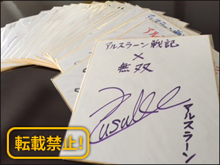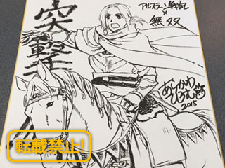 また、コーエーテクモブースで『アルスラーン戦記×無双』を試遊いただいたお客様には、この「荒川弘先生の直筆イラスト&サイン色紙」が印刷された特製ポストカードをプレゼント!もちろん、ここでしか手に入らないオリジナルグッズとなります。