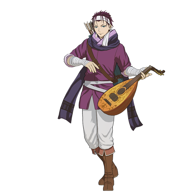 美しい赤髪をたなびかせ、楽器を片手に美しい詩を歌う流浪人。周りの女性たちをうっとりさせるなど、なかなかの「色事師」。その一方で、武器の扱いにも慣れるなど、ひと筋縄ではいかないところも。飄々とした姿とは裏腹に、裏では計算を張り巡らせている策略家でもある。