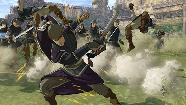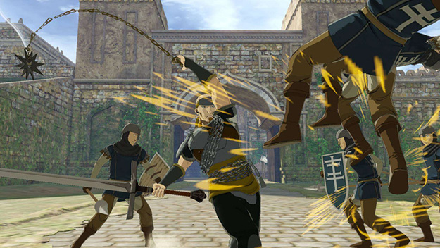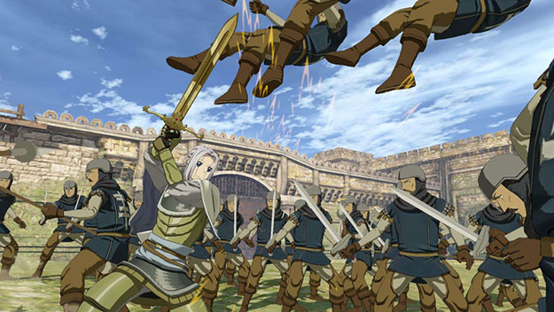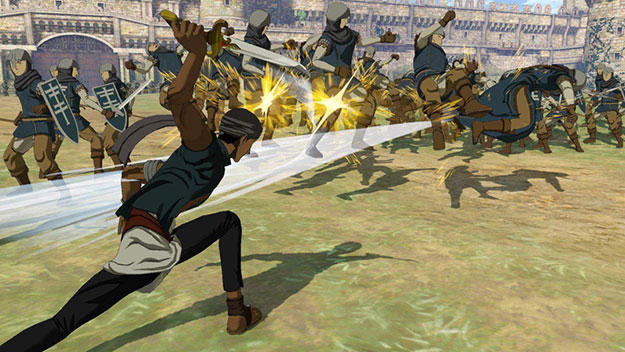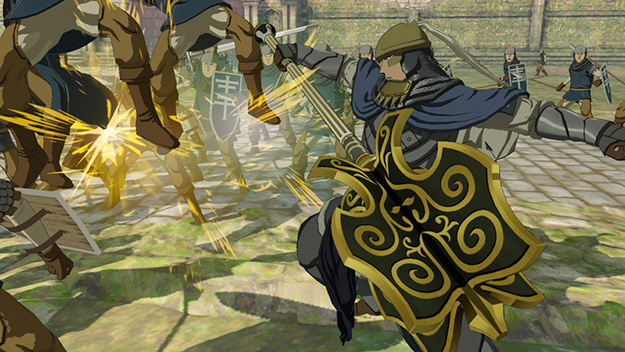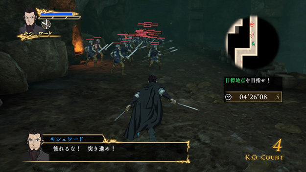 キシュワードが主役となる新シナリオです。聖マヌエル城での攻防戦の際、別働隊として地下から潜入を試みるキシュワードが、その動きを読んでいたルシタニア軍と対峙するというエピソードとなります。アニメ放送でも描かれた、キシュワード対サームの万騎長同士のぶつかり合いが再現されています。このシナリオをクリアすると、製品版では入手できないキシュワードの新武器「黄金の双剣」が獲得できます。| ※ | 「FREE MODE」の「DLC2」に「聖マヌエル城潜入戦」が追加されます。また、シナリオをプレイすると、キシュワードの武器「黄金の双剣」が手に入り、クリアするといつでも装備可能になります。 |
