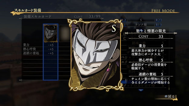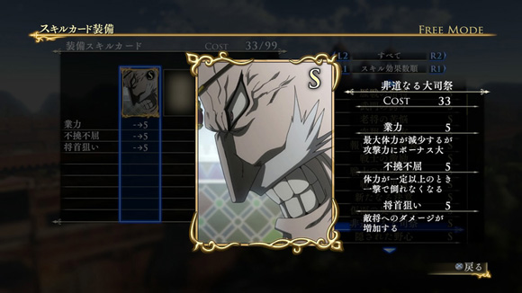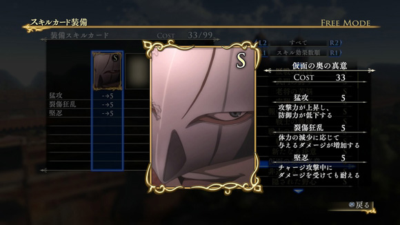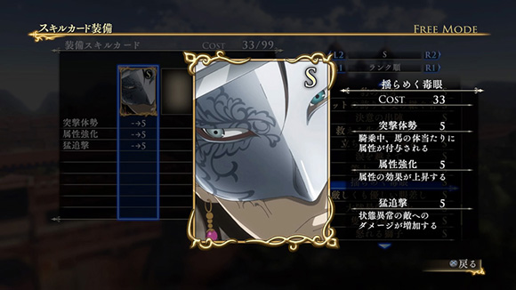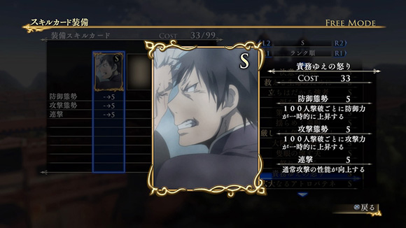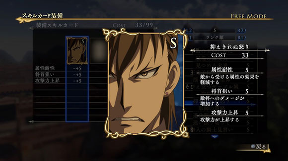 こちらのシナリオで特定の条件を満たしてクリアすると、限定スキルカード「怒りと憎悪の眼光」が入手できます。| ※ | 追加スキルカードの取得は、「スキルカード設定」>「追加」>で行えます。ご利用にはタイトルアップデートVer1.01以上が必要となります。 |