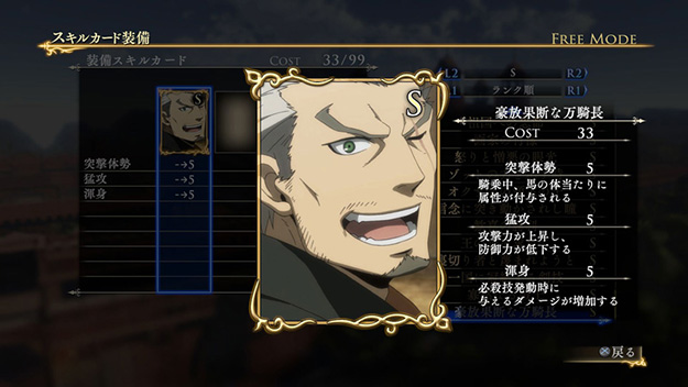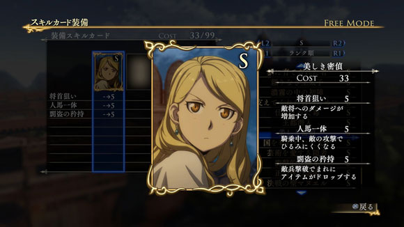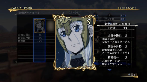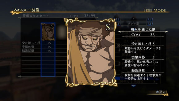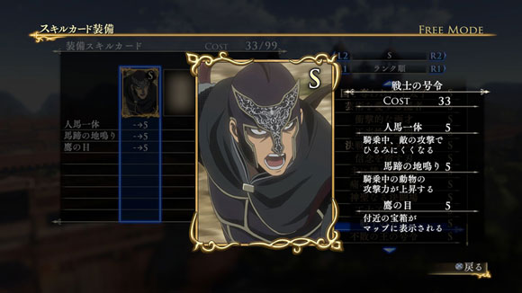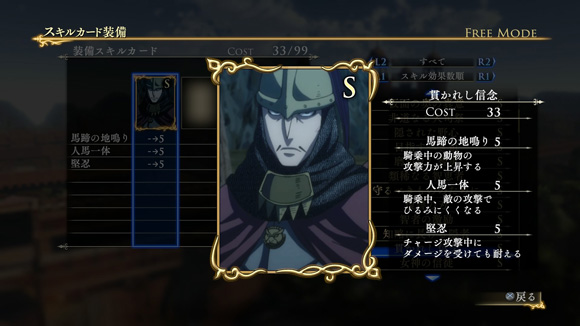 このシナリオをクリアすると、製品版では入手できないクバードの新武器「竜殺しの大剣」が獲得できます。さらに特定の条件を満たすと、限定スキルカード「豪放果断な万騎長」が入手できます。| ※ | 「FREE MODE」の「DLC2」に「ルシタニア軍突破戦」が追加されます。また、シナリオをプレイすると、クバードの武器「竜殺しの大剣」が手に入り、クリアするといつでも装備可能になります。 |