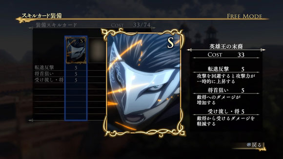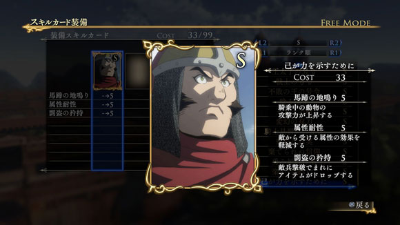また戦闘の中で特定の条件を満たすと、このシナリオでしか手に入らない限定スキルカード「双刀将軍の武」が獲得できます。| ※ | 「FREE MODE」の「DLC1」に「万人撃破戦」が追加されます。 |