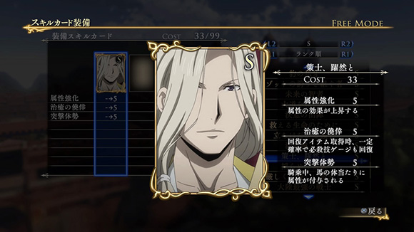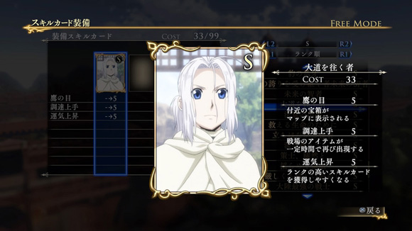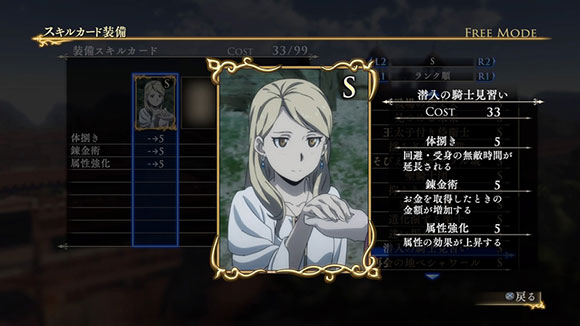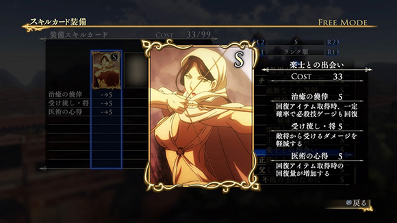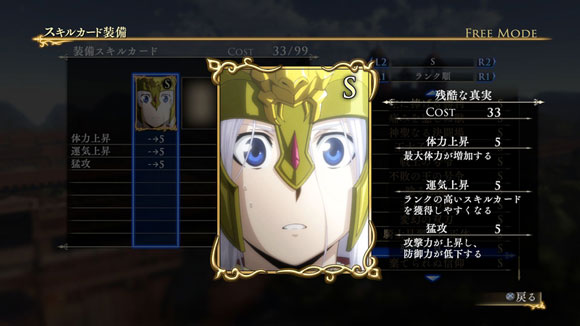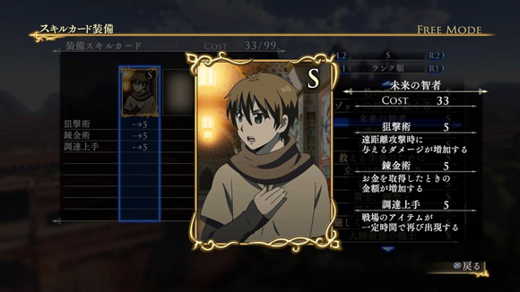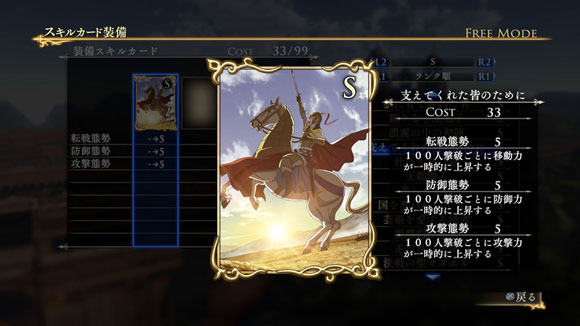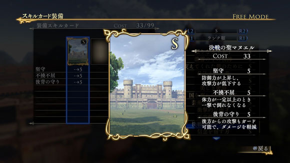 | ※ | 追加スキルカードの取得は、「スキルカード設定」>「追加」>で行えます。ご利用にはタイトルアップデートVer1.01以上が必要となります。 |