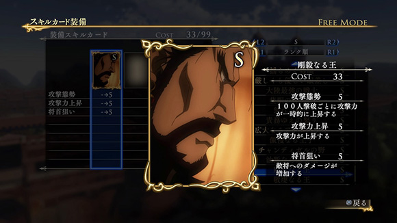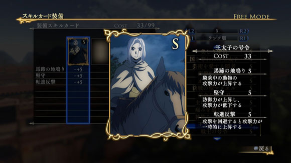 ナルサスが主役の新シナリオです。ナルサスが仲間とともに魔道士たちを討伐するという、ゲームオリジナルのシナリオとなります。特定の条件を満たしクリアすると、限定スキルカード「王の証を求めて」が入手できます。| ※ | 追加スキルカードの取得は、「スキルカード設定」>「追加」>で行えます。ご利用にはタイトルアップデートVer1.01以上が必要となります。 |