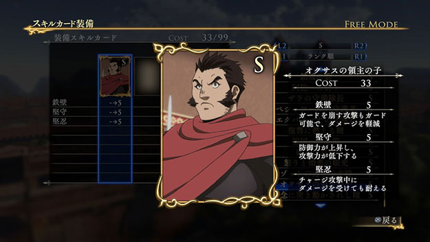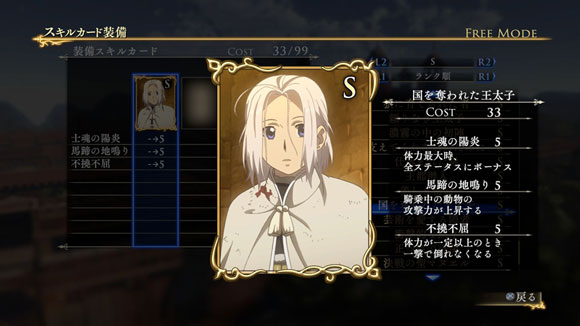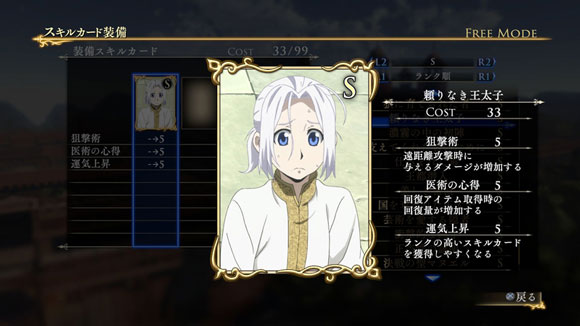 こちらのシナリオで特定の条件を満たしてクリアすると、限定スキルカード「オクサスの領主の子」が入手できます。| ※ | 追加スキルカードの取得は、「スキルカード設定」>「追加」>で行えます。ご利用にはタイトルアップデートVer1.01以上が必要となります。 |