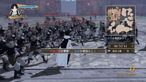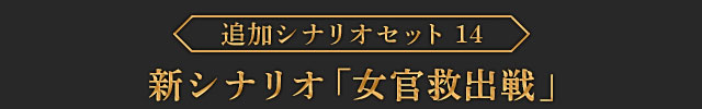 ファランギースが主役の新シナリオです。女官に迫る“不逞な輩たち”を、他の女性キャラクターたちと撃退するゲームオリジナルシナリオです。このシナリオをクリアすると、製品版では入手できないファランギースの新武器「巫女の弓」が獲得できます。| ※ | 「FREE MODE」の「DLC2」に「女官救出戦」が追加されます。また、シナリオをプレイすると、ファランギースの武器「巫女の弓」が手に入り、クリアするといつでも装備可能になります。 |