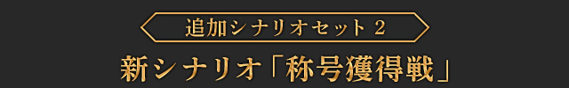 ダリューンが主役となる新シナリオで、シンドゥラの国都ウライユールで開かれる武芸大会にダリューンがアルスラーンとともに出場し、腕に覚えがある勇士たちとドリームマッチを行うエピソードとなります。また戦闘の中で特定の条件を満たすと、このシナリオでしか手に入らない限定スキルカード「猛虎将軍の咆哮」が獲得できます。| ※ | 「FREE MODE」の「DLC1」に「称号獲得戦」が追加されます。 |