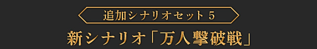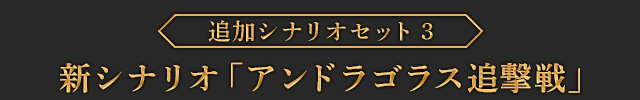 ヒルメスが主役となる新シナリオとなります。「アトロパテネ会戦」にてパルス軍が大敗する最中、ルシタニア軍としてパルスの王アンドラゴラス三世を追い詰めるという、製品版のストーリーモードではパルス軍の視点で描かれた場面を、ルシタニア軍の視点でお楽しみいただけるエピソードとなります。また戦闘の中で特定の条件を満たすと、このシナリオでしか手に入らない限定スキルカード「悲運の王子」が獲得できます。| ※ | 「FREE MODE」の「DLC1」に「アンドラゴラス追撃戦」が追加されます。 |