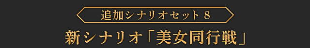 ギーヴが主役となる新シナリオとなります。ルシタニア軍の進攻により陥落した王都エクバターナから脱出したギーヴは、その旅路で女性神官ファランギースと出会います。彼女が探しているアルスラーン一行との合流を手助けするため、一緒にカーラーン軍の後を追うことに…、という製品版では描かれていないエピソードとなります。このシナリオをクリアすると、製品版では入手できないギーヴの新武器「薔薇の六絃琴」が獲得できます。| ※ | 「FREE MODE」の「DLC2」に「美女同行戦」が追加されます。また、シナリオをプレイすると、ギーヴの武器「薔薇の六絃琴」が手に入り、クリアするといつでも装備可能になります。 |