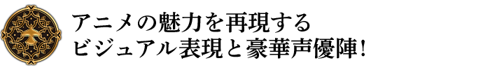 登場キャラクターたちのビジュアルはアニメ表現を取り入れ、キャストもアニメと同じ豪華声優陣を起用することで