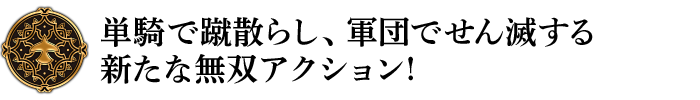 本作では「無双」シリーズが誇る“無数の敵をなぎ倒す一騎当千の爽快アクション”と『アルスラーン戦記』に見られる“軍団によるスケール感のある壮大なアクション”を組み合わせ、今までの「無双」シリーズにない爽快感と高揚感あふれるアクションを実現します。