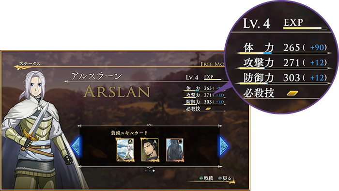 「スキルカード」は複数枚装備させることができ、自由度の高いキャラクター育成・強化を行うことができます。