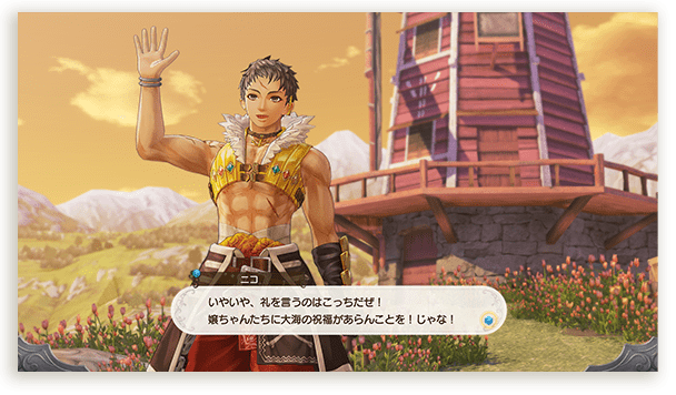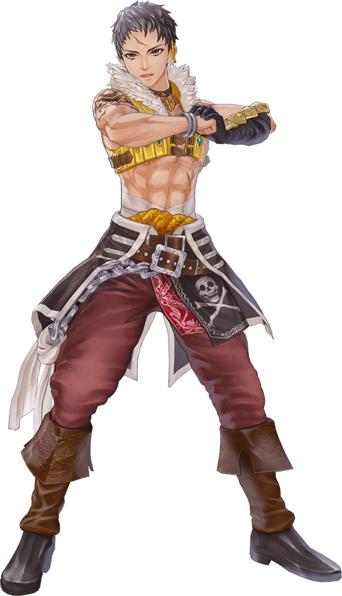 現在は冒険者とはいえ、元海賊らしく「イカリ」で戦う近接戦闘タイプ。前衛に出ればスキル「ブレイブスタンス」で味方への攻撃を受け止め、後衛に回れば回復役としてパーティーを引っ張ってくれる。