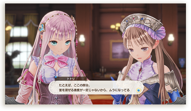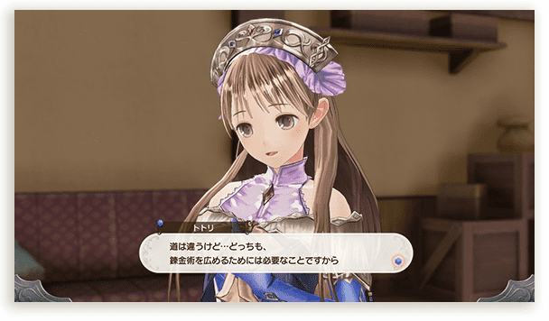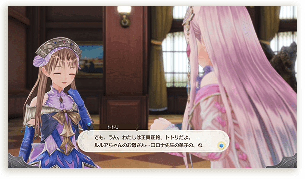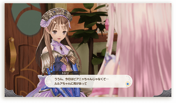 ロロナの弟子である錬金術士。錬金術の腕前はロロナに並ぶほどで、アーランドでも屈指の実力者。ピアニャとは実の姉妹のように仲が良く、共に錬金術を世界に広める活動を行っている。