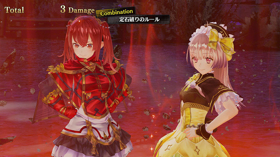 zoomライバルであり親友でもあるフィリスとのコンビネーションアーツ、「紅蓮の至宝石」。対象単体に炎属性の特大ダメージを与え、レベルを15 下げるという超強力なもの!