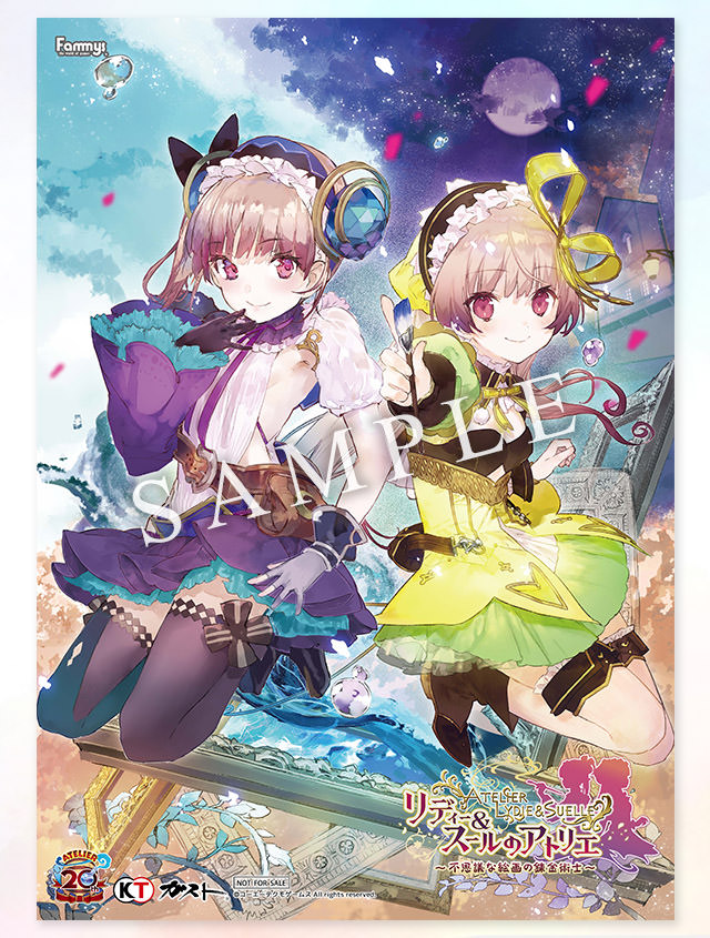 「アトリエ」シリーズ20周年を記念したピンバッジをはじめ、ソフィーとフィリスのビジュアルが入ったプレミアムビジュアルブック、