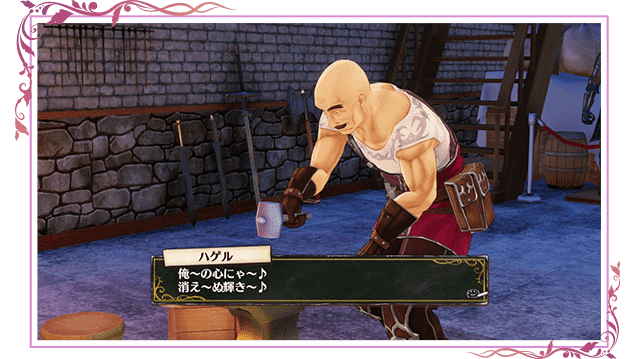 アトリエランク制度が始まり、錬金術士でにぎわい始めた今がビジネスチャンスであり、 同時に名前を売るチャンスだと息巻いている。