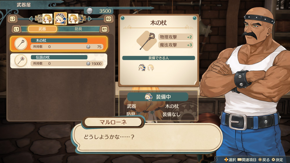 武器や防具を揃えるお店。戦闘準備を整えよう!