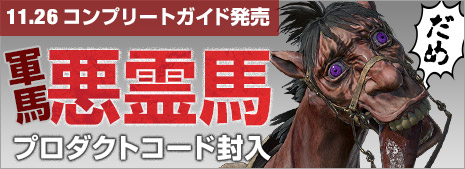 | 2016.11.8 | コンプリートガイド 11/26発売 追加軍馬「悪霊馬」が手に入るプロダクトコード付きです。 |