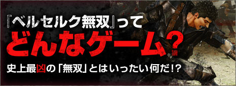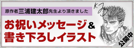 | 2016.10.27 | 『ベルセルク無双』いよいよ本日発売! 原作の三浦建太郎先生からのお祝いメッセージもご覧ください。なんと、書き下ろしイラスト付きです! ゲームがさらに楽しくなるダウンロードコンテンツも要チェック! |