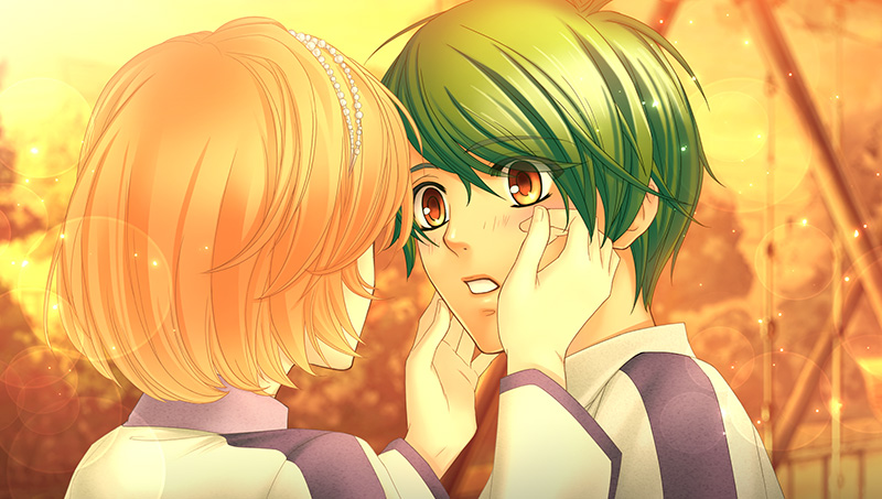 下校時、七海とかなでは少し寄り道して帰ることに。 コンビニで七海オススメのアイスを買い、公園のベンチに腰掛けるふたり。 七海「それじゃ、いただきます」 「はあ〜〜〜〜〜。冷たさが全身にしみ渡って、生き返るみたいです」 「それに……、なんだか今日は、いつもよりおいしく感じます」 アイスがおいしく感じるのは一緒に食べているから? と問うかなでに、うろたえる七海。 「……えっ!? あ、そ、そうですね。そう…かも、しれません」 「先輩と一緒だからです。アイスがおいしいのも、寄り道が楽しいのも」 「他の人と一緒だったとしても、きっとこんな気持ちにはならない。 オレ、先輩のこと本当に尊敬してるんですよ」 七海が言い終えたその時、いきなり突風が吹き砂ぼこりが舞い上がる。 「うわっ……。いてて、今の風で、目に砂ぼこりが……。先輩は大丈夫でしたか?」 目をこする七海の顔を見ると頬にまつげがついている。 まつげを取ろうと黙って七海の頬に手を伸ばすかなで。 「えっ、ちょ、先輩っ——…!?」 ふいに頬に触れられて赤面する七海。 「な、なんで…そんな……急にオレの、ほ、頬に………っ!」 「……え? まつげがついていたから……? ……そ、そうでしたか……」 「……あ、動いたら取りにくいです、よね。す、す、すみません」 「……………………」 思いもよらないかなでの行動に動揺する七海。 駆ける鼓動の音がかなでに伝わってしまうのではと思うほど、余計に速くなる鼓動。 「(こんなのたいしたことじゃない。先輩は、ただの親切心でそれ以外理由もないんだから)」 「(照れるほうがおかしいんだ。平常心…平常心を——)」 「(保てるわけないよ、先輩の顔が、こんなに近くて! いいにおいがして頭が…クラクラしてきた)」