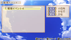 ダウンロードが終わったら、ゲームを起動し、想い出→配信イベントを実行して、リストから配信イベント1を選択します。
