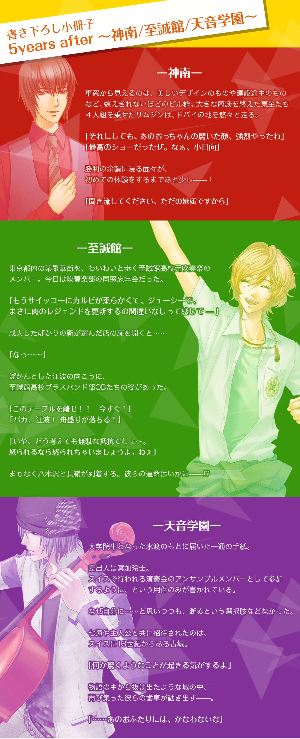 - 書き下ろし小冊子「5years after ~神南/至誠館/天音学園~」