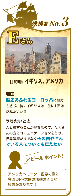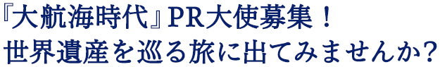 見事選ばれますと、本シリーズのPR大使として本物の世界遺産をその目でご覧いただくことができます。
