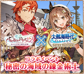 『ライザのアトリエ2 ~失われた伝承と秘密の妖精~』から『大航海時代 Online』の世界に迷い込んだ、錬金術士ライザとその幼馴染レント。元の世界に戻ろうと奮闘する二人に助力しよう! 二人にちなんだ装備品も登場!2020/12/25