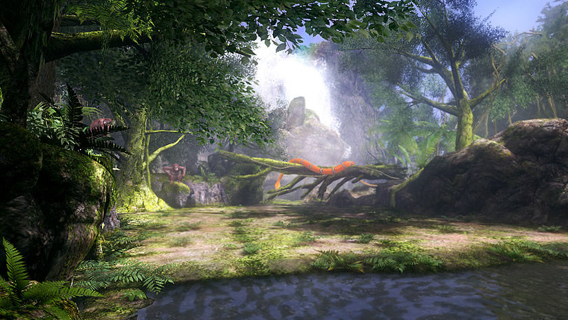 洞窟内を走る激流の川を筏(いかだ)に乗って下っていくステージ。