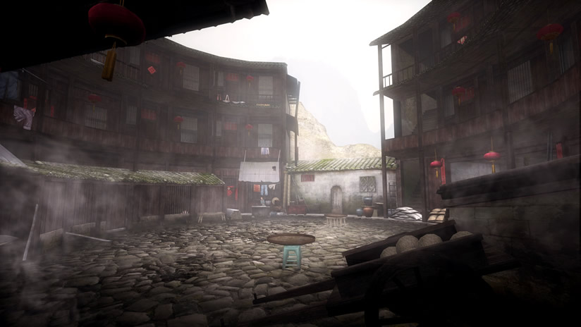 中国南部の山間部に数多く残っている集合住宅を模したステージ。