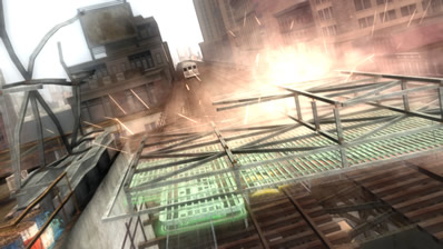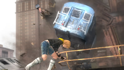 すぐ横には高架鉄道が通っており、ひっきりなしに電車が通っている。パワーブローで、電飾看板を倒すことができるが・・・。