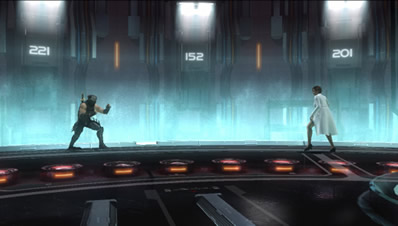 壁や床には、戦う者達のデータを集めるキャプチャー用のレンズが無数に敷き詰められ、不気味な雰囲気が漂っている。