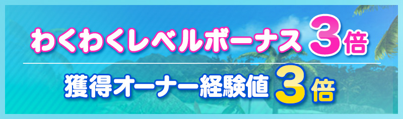 ※バカンス終了時のリザルト画面にて獲得できるわくわくレベルボーナスが3倍になります。