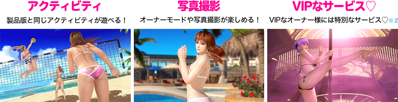 ※前作『DEAD OR ALIVE Xtreme 3 Fortune』『DEAD OR ALIVE Xtreme 3 Fortune 基本無料版』で、「みさき」使用権/「レイファン」使用権 をご利用いただくことも可能です。詳細につきましては以下の「詳細情報」をご確認ください。