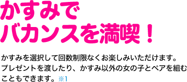 ※1 かすみ以外の女の子を選択したり、かすみ以外の女の子に水着のプレゼントを渡すためには「各キャラクターの使用権」DLCの購入が必要です。