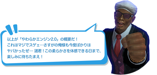「やわらかエンジン」の物理演算がベースとなっており、より快適に動作するようカスタマイズされています。