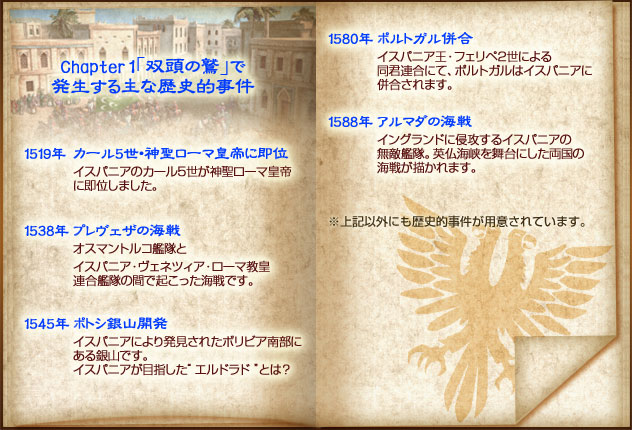 Chapter 1では16世紀(1501年〜1600年)に発生した出来事が、歴史的事件として再現されます。