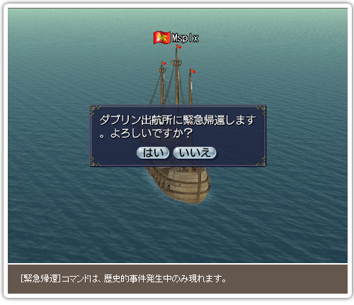 さらには、歴史的事件に即座に介入できるよう、出航所に[緊急帰還]コマンドが現れます。