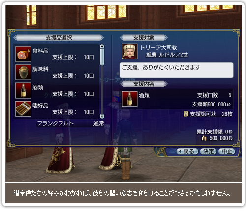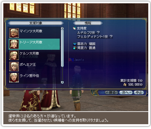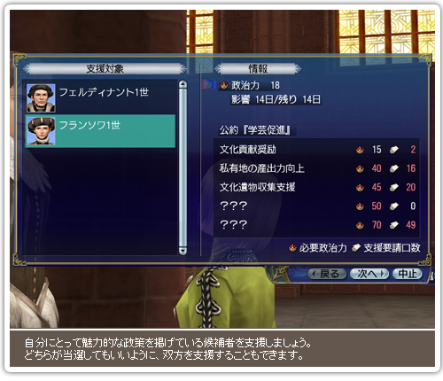 皆さんが皇帝選挙で目指すのは、自分にとって有益な政策を掲げている候補者を当選させるよう働きかけることです。