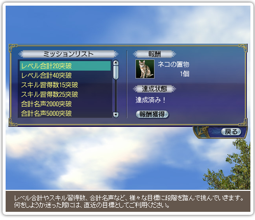 航海者養成学校を卒業すると、一人前の航海者となって様々なことに挑戦できますが、何を目指せばよいのか迷う場合もあるでしょう。そこで新たな試みとして、入門者から中級者を対象とした“チャレンジミッション”を導入します。チャレンジミッションでは目標が段階的に掲げられており、それを順に達成していくことで、航海者としての経験を積んでいけるようになっています。
