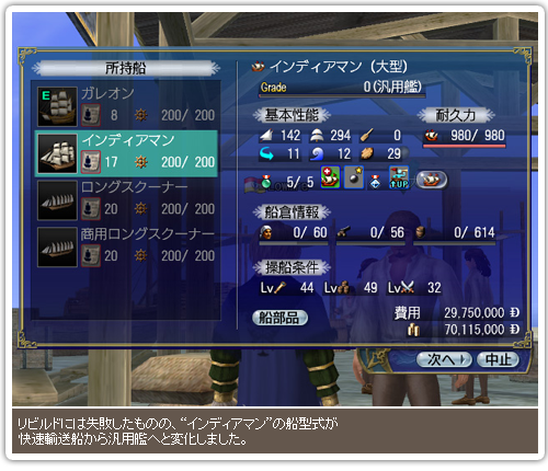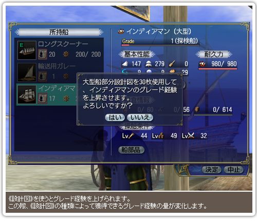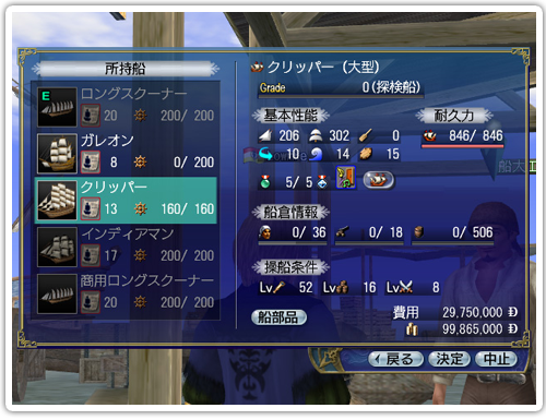 “探検船”、“輸送船”など船の型式を表すものです。型式によって、グレードが上がる際に上昇する強化性能が異なります。強化船の船型式は、リビルドを行った際にその成否に関わらず、素材船の型式に応じて変化することがあります。