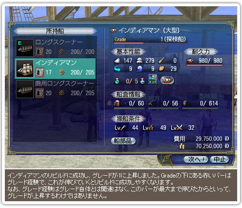 グレードが1と3に上昇した際に、得られるボーナスのことです。リビルド時に獲得したいグレードボーナスを選択しておき、リビルドを実行して成功すれば、強化船にそのボーナスが付く仕組みです。グレードボーナスには様々な種類があります。