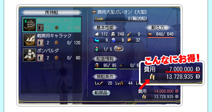・各名声(冒険、交易、戦闘)の合計値が20,000を超えた場合、獲得量は1/2