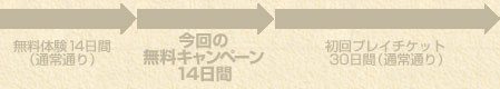 12月14日(水)〜1月18日(水)の間に、正式サービスへアップグレード(有料:4,515円(税込))していただいた方々を対象に、さらに14日間の無料プレイチケットを追加でプレゼントいたします。